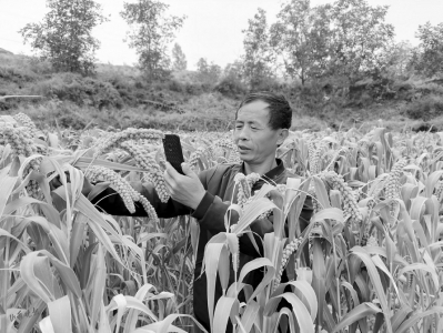 魏寶玉站在齊人高的谷子地里,對著手機大聲說:“給大家看看,到了十月中旬就能收了。今年谷子長得多好,全都是上的羊糞有機肥。”