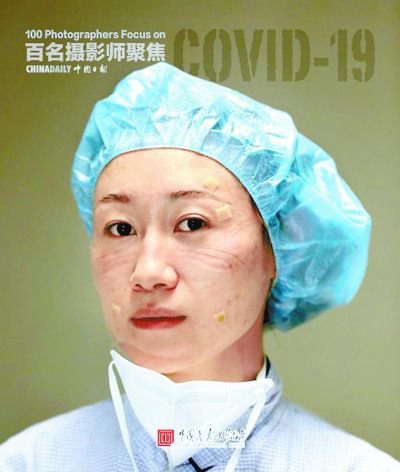 最新出版的《百名攝影師聚焦COVID-19》畫冊封面,是一幅剛剛摘下口罩的援鄂醫護工作者肖像。照片中,被口罩勒出的深深印痕和白衣天使堅毅的目光,令人久久凝視。
