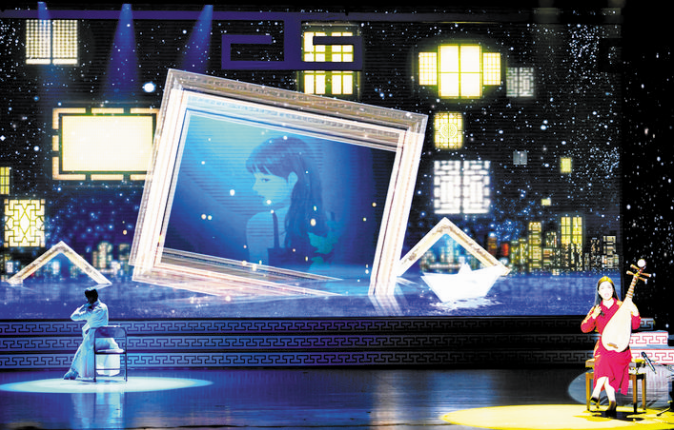 9月29日,第十屆中國曲藝節在河南省平頂山市文化藝術中心開幕,來自全國各地的曲藝演員為觀眾獻上一場精彩紛呈的曲藝盛宴。本屆曲藝節采取現場演出和線上展演相結合的方式舉辦。圖為在河南省平頂山市文化藝術中心,曲藝演員在舞臺上表演節目。( 新華社記者 郝 源 攝)