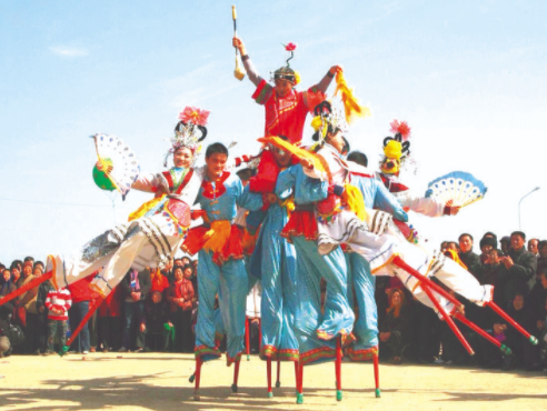 秧歌表演 民間社火是指春節期間流行于我國民間的一種民俗娛樂活動,距今已有數千年歷史。它來源于古代勞動人民對土地與火的崇拜,是遠古時期對于巫術和圖騰崇拜的產物。隨著社會的進步和人們認識能力的提高,民間祭祀社火的儀式中逐漸增加了娛樂的成分,成為規模盛大、內容豐富的中國傳統民俗娛樂活動。人們通過舉行祭祀拜神活動,意在祈求來年風調雨順,五谷豐登,國泰民安,萬事如意。 “社”為土地之神,“火”為傳說中的火神。在以農業文化著稱的中國,土地是人們的立身之本,為人類生存發展奠定了堅實的物質基礎。火是人們烹飪和取暖之源,在古人的原始思維中認為火也有“靈”,于是視其為具有特殊含義的神物并加以崇拜,形成了崇尚火的觀念。 山西的民間社火內容豐富,種類多樣。根據表演形式可分為鑼鼓類、秧歌類、車船轎類、燈火類、閣蹺類等。 鑼鼓類。以節奏強烈明快、場面壯闊粗獷為特點,充分展示了黃土高原人民質樸豪放的氣質。演奏時,表演者必須把各種樂器有組織地編排配合起來,按照鼓板指揮奏出有節奏、有規律的各種音響。 秧歌類。山西較出名的秧歌有祁太秧歌、沁源秧歌、臨縣“傘頭秧歌”、原平“鳳秧歌”、寧武“小秧歌”、繁峙秧歌等。其中有的側重歌唱,如“傘頭秧歌”“小秧歌”,俗稱“文場秧歌”;有的是歌舞結合,以舞為主,俗稱“武場秧歌”;有的演出劇目以古裝戲為主,如繁峙秧歌;有的既包含當地鮮明特色,又吸收了外地歌舞藝術的特長,如“鳳秧歌”。 車船轎類。以小推車、跑旱船、抬花轎一類風趣幽默的表演著稱,形式簡便,不受場地約束,也沒有繁雜的規范和高難度的技巧,隨意性極強。表演工具是依照車、船、轎等交通工具的外形,經過精心加工、美化制成。內容多結合時代發展,如《小車會》《旱船》等節目。 燈火類。山西燈火的特點一方面繼承了傳統的燈火藝術,具有全國各地燈火的共性特征;另一方面又發揮了獨特的自然資源優勢,具有明顯的地方特色。太谷的燈在山西是很有名氣的,其品種繁多,制作靈巧,外觀精致,讓人愛不釋手。清康熙年間,太谷燈多為紙燈、紗燈、羊角燈、繡球燈等,到了道光年間開始引進宮燈。這些宮燈用紫檀木、核桃木做成,環飾流蘇,刻工考究,形狀大方高雅。在山西流傳著這樣一句名諺:“南莊的火,太谷的燈,徐溝的鐵棍愛煞人。”除了太谷宮燈,南莊架火在山西尤其晉中一帶也是廣受歡迎的。架火,是由描龍繪鳳、金匾高懸的數十層殿宇樓閣頂架而成,形如古塔,氣勢磅礴。層層飛檐高挑,鈴鐺垂吊,從底到頂足有十三公尺。塔頂旌旗飄揚,別具情趣;塔身彩炮成串,幡綴相連;塔底主次分明,古色古香。多少年來,南莊架火因工藝獨特、氣勢宏偉而載入史冊,且輩輩相傳,至今不衰。 閣蹺類。以道具制作精妙神奇、表演技巧驚險動人為廣大群眾喜愛,其中晉南地區的最有代表性。閣蹺主要分推棍、背棍、劃棍、高蹺。 舊時的推棍是指人們為求神祈雨,抬著泥塑龍王像在街市游行的一種活動,之后泥像逐漸由小孩扮演的戲劇和神話人物代替。表演者除了在棍架上做動作的孩子們,還有那些在下面抬棍架的民間藝術家們。推棍表演時都有一套約定俗成的號子,以此來讓表演者們統一行動,互相配合。 背棍是一種古老的社火形式,最初是將兒童跨于大人頸項表演,后發展為由身強力壯的小伙子肩縛特制叉形鐵架,把女童綁縛于帶著踩盤的鐵柄上進行表演。背棍表演隊伍通常為十人至二十人不等,他們按照既定的鼓點和步點在鑼鼓的伴奏下,或前或后,或左或右,穿插于人群中,奔走于村舍間,頗受百姓歡迎。 劃棍是利用杠桿原理創造的一種高空造型藝術。在七八米長的木桿頂端固定一個鞍型座位,表演的兒童跨坐其上,桿子接近尾部的地方設一個支點架,多人操作使桿端翹起,將兒童送入高空。劃棍隊往往是棍式表演隊的先導,因為平日里鬧社火的現場多是人山人海,劃棍表演必須打開場子,為之后的表演開道。 高蹺俗稱“拐子”,因舞蹈時腳踩木蹺而得名。木蹺高度不一,有的低至一尺,有的高達一丈五尺,不過一般多為四五尺。高蹺的表演形式有單拐、雙拐,亦有三人四拐,其中舞者多扮演某個古代神話或歷史故事中的人物,服飾多模仿戲曲行頭,常用道具有扇子、手絹、木棍、刀槍等。高蹺有文高蹺、武高蹺之分,文高蹺是用弦樂或吹鼓樂伴奏,邊走邊舞,變換著各種隊形;武高蹺則用打擊樂伴奏,以表演特技為主。(小編綜合整理) (責任編輯:盧相汀) |