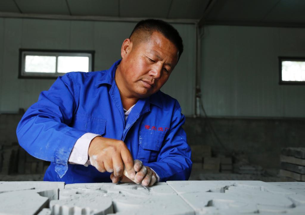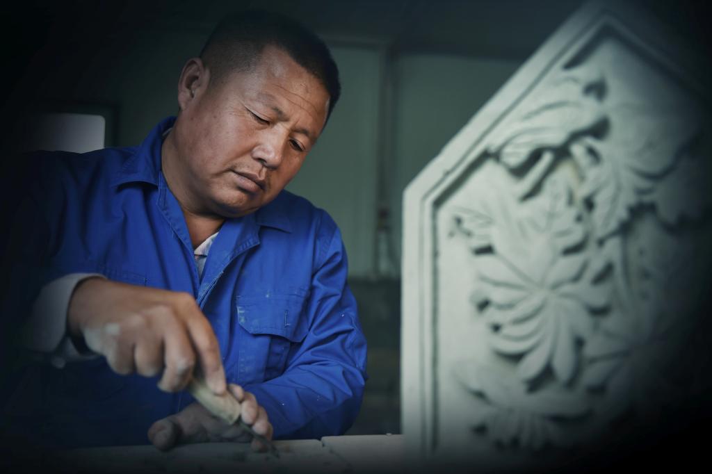 “望臺磚雕”創始人王鎖貴 磚雕在我國已有兩千多年歷史,磚雕技藝在清代、民國初發展至巔峰。磚雕較木雕能保存得更加久遠,既能體現石雕的剛毅質感,又能表達木雕圓潤平滑的韻味,剛柔并濟、質樸清秀。磚雕的裝飾主題或祈福納吉、或教化倫理、或驅邪禳災,貼近百姓生活,以樸素而直白的藝術語言表達民眾對生命價值的關注、對家族興旺的企盼、對富裕生活的向往…… 代縣農民王鎖貴,潛心鉆研磚雕技藝35年。在他手下,瀕臨失傳的磚雕手藝得以復活并賦之以創新,他創造的“望臺磚雕”品牌享譽大江南北、長城內外。