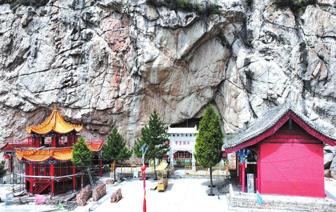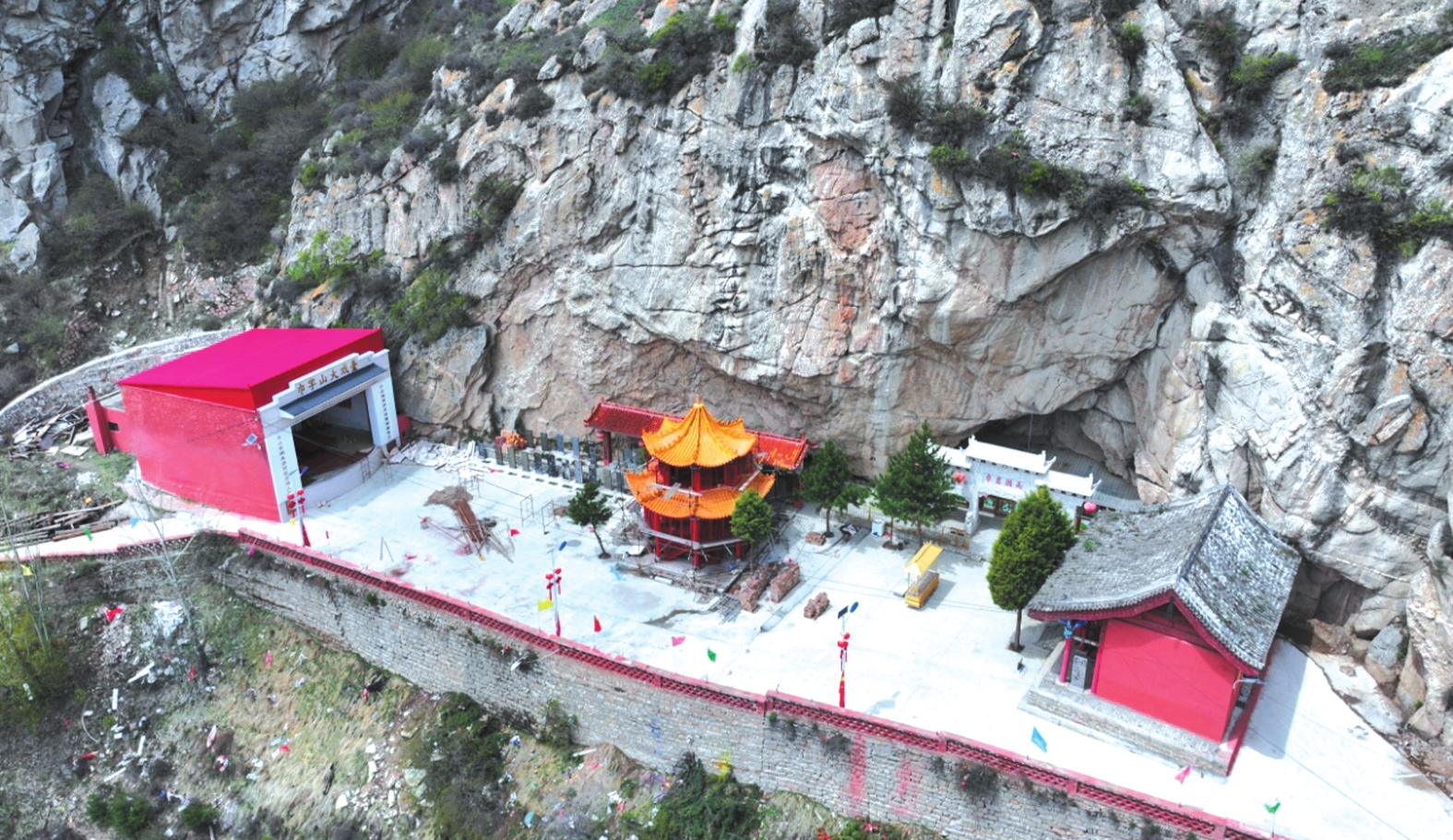春日里,山桃花與山杏花沿坡綻放,粉白相間的花海從山腳漫至山腰,與翠綠的松柏相映成趣。此時若恰逢細雨,云霧在花間游走,“巾巖瀨雨”的奇景尤為靈動,水滴擊石的清音與花開的簌簌聲交織,仿佛天地間的私語。盛夏時節(jié),山中松濤陣陣,涼意襲人。雙巾峰下的“沁心泉”水量充沛,泉水清冽甘醇,飲之可去暑熱。沿山路行至“回音壁”,一聲呼喊能引來七聲回應,故又稱“七響巖”。傍晚時分,夕陽為石灰?guī)r峰巒鍍上金邊,池面波光粼粼,形成“巾峰夕照”的景致,與“瀨雨”并稱山中雙絕。秋日登高,則見株株松樹挺拔直立,廟宇與油松交相輝映,層林盡染。此時“瀨雨”之景尤為別致,洞內泉水如鐘表滴答,當?shù)厝朔Q為“秋漏”。有現(xiàn)代詩人描繪此景:“巾巖雄峙,霧繞云纏多靈氣;瀨雨淋漓,珠垂墜玉一奇觀。”形象地把自然之音與時間之感巧妙融合。冬雪初霽時,巾字山銀裝素裹,雙巾峰如白玉雕琢的冠冕,“瀨雨”洞洞外凝結的冰棱如水晶簾幕,陽光折射下七彩斑斕,構成冬日里的清麗樂章。