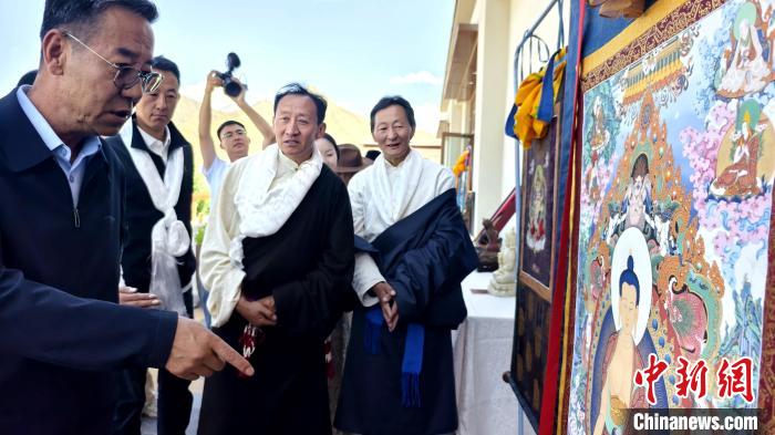 圖為參加《YOOBEI守藝人計劃》啟動儀式的工藝美術大師參觀唐卡等作品。貢桑拉姆 攝