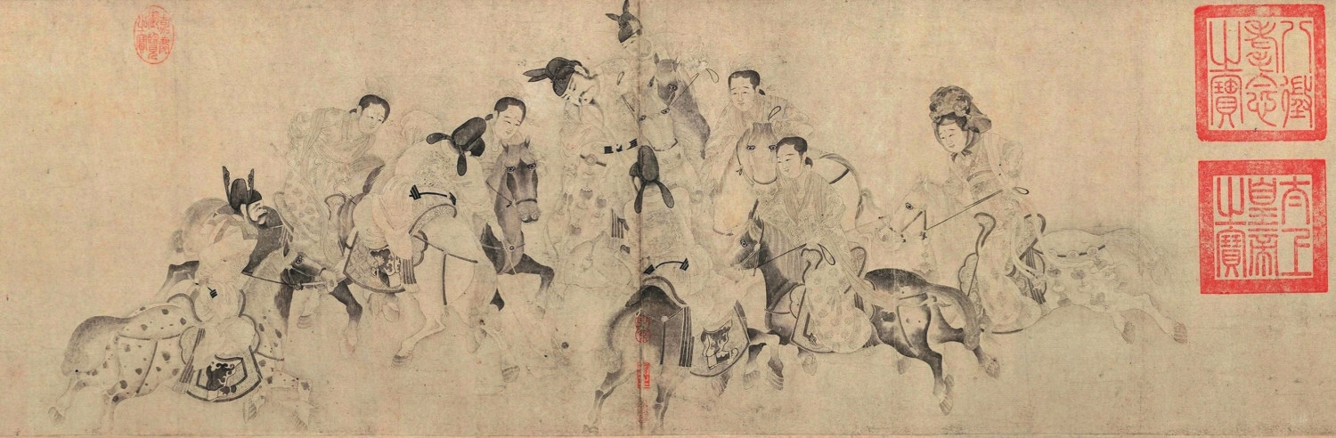馬球的流行,也曾起到交流媒介的作用。遼代陳及之所繪《便橋會盟圖》,記錄了唐太宗和東突厥頡利可汗在渭水便橋會盟時,大唐和突厥進行馬球比賽的場景。唐中宗時,吐蕃派使者迎接金城公主入藏,使團中有馬球高手。彼時吐蕃請求與大唐比賽馬球,唐中宗派出的選手被吐蕃打敗,接著又派出當時還是臨淄王的唐玄宗李隆基和嗣虢王李邕、駙馬楊慎交、駙馬武延秀等人再與吐蕃比賽,獲得勝利。據《封氏聞見記》載:“玄宗東西驅突,風回電激,所向無前,吐蕃功不獲施。”