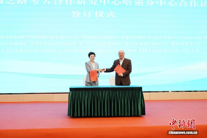 中新網西安9月17日電 (記者 阿琳娜)記者17日從絲綢之路考古合作研究中心獲悉,西北大學與哈密市人民政府校地全面合作協議簽訂暨絲綢之路考古合作研究中心哈密分中心揭牌儀式15日在新疆維吾爾自治區哈密市舉行。
