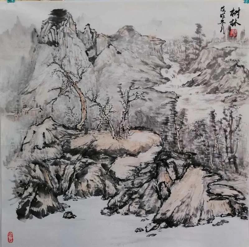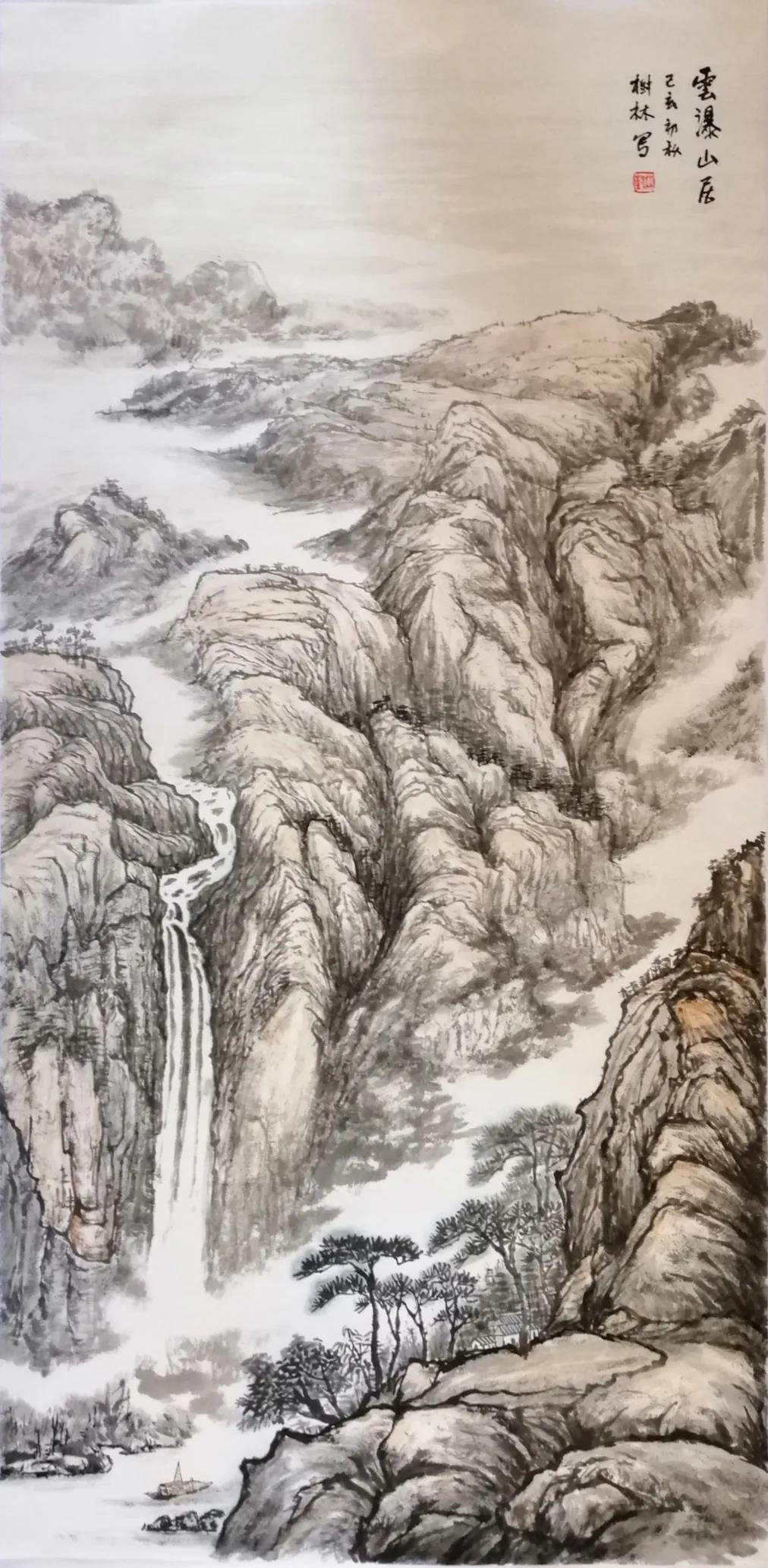 杜樹林。1967年生,山西省忻州市忻府區人。幼小酷愛繪畫,現忻州市美術家協會副秘書長,忻府區美術家協會秘書長。國際交流畫院忻州金源泰基地主任。先師從著名畫家,書法家陳巨鎖,張啟明,孟柄亨等先生。2019年慶祝新中國成立70周年(小康之路)作品展出。(云鶴隱居圖),(云瀑山居)臨創作品展。丹青繪盛世,翰墨書壯志(青山傲雪)作品展!