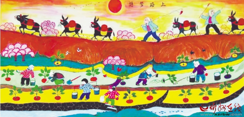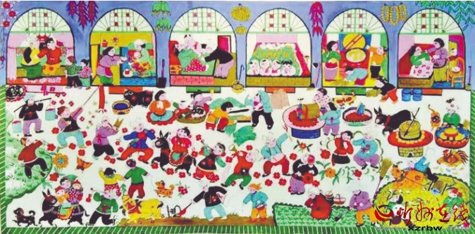 炕圍畫又稱“墻圍畫”,是一種中國民間常見的室內裝飾畫。忻州處于高寒地帶,在農村家家戶戶都用火炕取暖御寒,炕上的墻面極易脫落起皮,蹭臟衣物被褥。于是人們以刷墻所用的白土調以膠水,在環炕的墻上涂高約二尺的“圍子”,既保護了墻面,又使人們免遭臟衣污物之累。后來,炕圍畫逐漸發展為以顏料做底、色彩畫花、桐油涂罩,既鮮艷明亮,又堅固耐久。日常臟污了,用濕布擦拭,則又光亮如新。