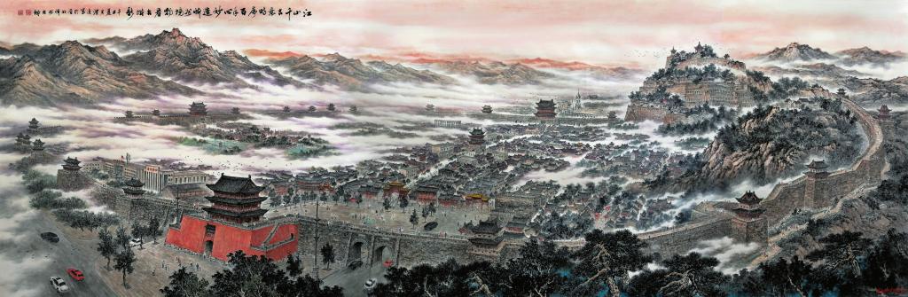 在堅持不懈的學習和創作過程中,殷渭凌逐漸意識到,書畫藝術有其自身規律,并不存在固定模式,對于一個書畫家來說,確定個人藝術走向非常重要,想要表現的主題、內容、情感最終會決定創作本身的價值。也正是清楚了這一點,殷渭凌將自己的創作素材鎖定在熟悉和熱愛的故土上。他從家鄉的自然造化中選取創作對象,提煉感情和思想,然后加以調整、升華,最終呈現給觀者,讓大家看到了獨具韻味的黃河、太行、長城、古鎮、雄關、窯洞、高原、古剎、佛塔等。