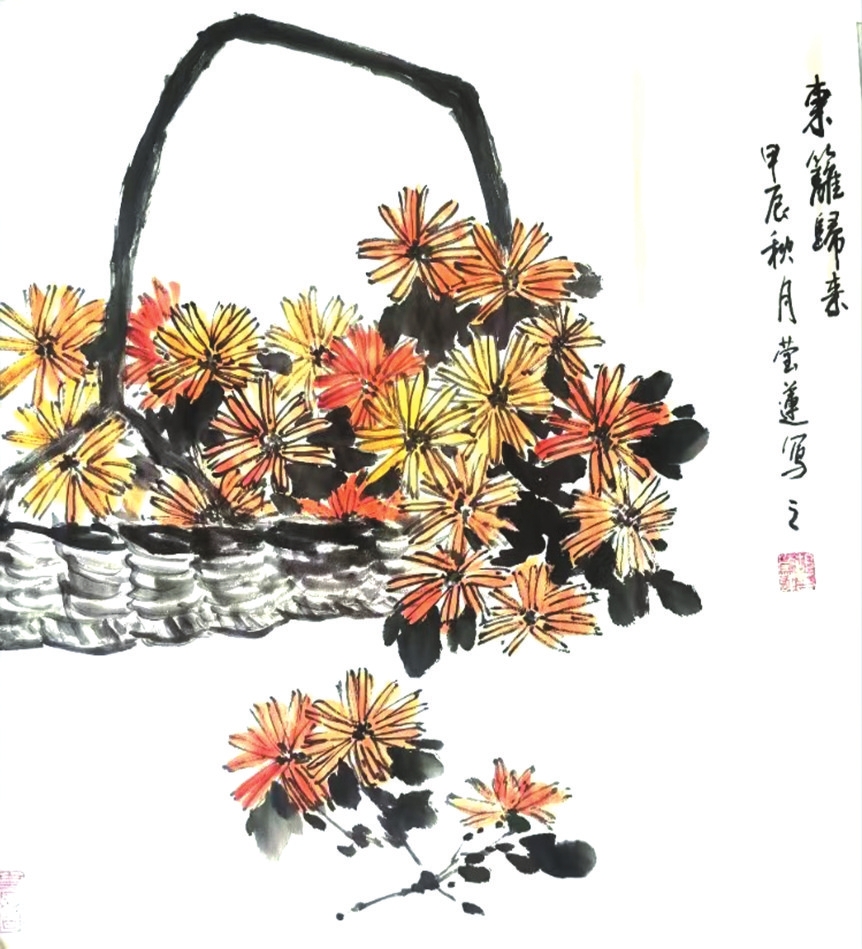 傳統花鳥素有“托物言志”之脈,從明代大寫意花鳥畫代表徐渭以“墨葡萄”寄寓郁憤,到近現代花鳥畫大家齊白石以“蝦蟹”抒發閑情,題材歷來是畫家心緒的直觀映照。胡瑩蓮以吉祥意象入畫,實則是將傳統花鳥美學與當代人的情感需求深度聯結,讓“氣韻”從紙墨氤氳間走出,自然融入當代生活現場。