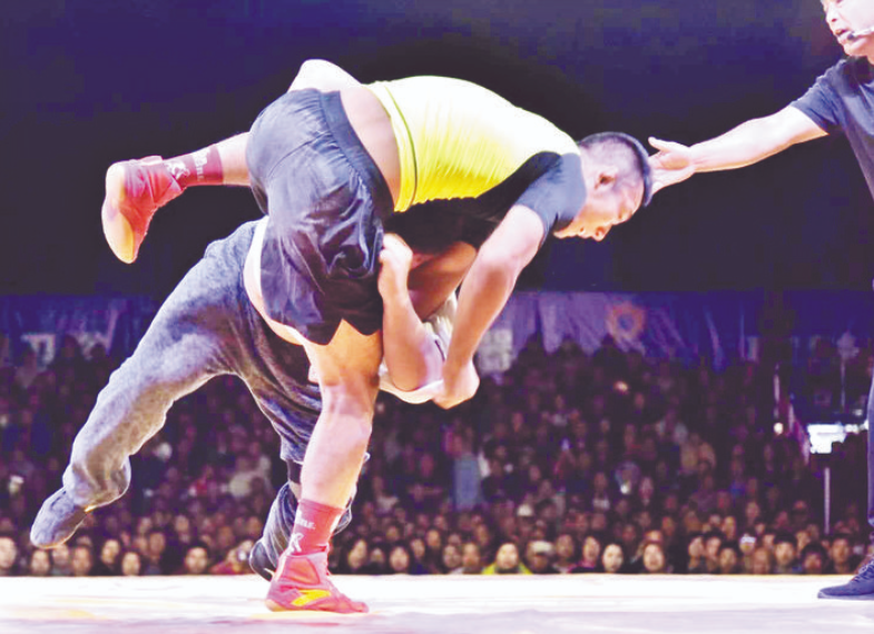 摔跤,為兩人相角的一項對抗性運動,作為一種文化現象由來已久。早在唐宋時期,忻州境內的摔跤活動就非常盛行,而原平,更是摔跤沃土,英豪輩出。 中國式摔跤的歷史淵源 南朝梁時任昉在《述異記》載:“蚩尤氏頭有角,與軒轅斗,以角抵人,人不能向。”這可能就是中國歷史上最早的摔跤,其真實狀況為人戴牛角相抵,后人稱其為蚩尤戲。蚩尤戲發展到西周時被改稱為角力,統治者以此訓練士兵。秦滅六國而統一中國后,又將角力改稱角抵。其比賽方法是在參加對抗的兩人之間放一根木棍,兩人席地而坐,雙手握棍,兩腿蹬直。比賽開始后,兩人用力向后拉,誰的臂部先離開地面,誰就算負。 到了漢代,角抵又進一步發展成角抵戲,亦稱百戲,不僅具有相當大的規模,而且增加了很大的娛樂性?!稘h書·武帝記》載:“元封三年(公元前108)春,作角抵戲,三百里內皆來觀。” 盛唐時,角抵是宮廷娛樂的主要項目,在民間也普遍流行。每年的正月十五上元節和七月十五的中元節,被確定為角抵之期,屆時要舉行大規模的角抵活動。據宋人調露子《角力記》敘述,陜西戶縣人蒙萬贏于唐咸通年間(公元860—874年)入宮廷,以蹴鞠、步打、拳球、彈鳥等技藝供奉。十四五歲時入“相撲冊”專以相撲供奉。因其身手敏捷,技藝精湛,數十年無人能敵,世人呼為萬贏,以至本名漸被遺忘。晚年曾傳授技藝,收弟子數百名。 宋代,角抵又被稱為爭交,亦稱相撲,有了更進一步的發展。宮廷中養有被稱作“內等子”的專業相撲人員,供消遣娛樂,民間也大量涌現出相撲組織,專門從事相撲活動。當時的臨安護國寺南高峰是相撲高手一決雌雄的場所。南宋人吳自牧著《夢粱錄》:“若論護國寺南高峰露臺爭交,須擇諸道州郡齊力高強,天下無對者,方可奪其賞,如頭賞者,旗幟、銀杯、彩緞、錦襖、官會、馬匹而已?!眰€別勝者甚至還會弄個一官半職。這種露臺爭交,也就是后世所謂的打擂?!端疂G全傳》中所描述的浪子燕青東岳爭交,智撲擎天柱的打擂比賽,形象地再現了這類露臺爭交的情形。另一種形式是在瓦子(即游藝場所)里進行的表演性質的相撲?!秹袅讳洝酚涊d:“瓦市相撲者,乃路岐人聚集一等伴侶,以標圖手之資。先以女子數對打套子,令人觀睹,然后以其力者爭交。”由此可見當時已有了女子相撲運動。元明兩代,摔跤就更加普及了。 到了清初,人們才將南方的相撲和北方的角抵統稱為摔跤。摔跤是一項歷史悠久、源遠流長的體育活動,其間經歷了紛繁復雜的變化,逐步成為廣大勞動人民喜聞樂見的運動形式。 “摔跤之鄉”的形成根由 唐宋時期,忻州境內的摔跤活動已經非常盛行??脊湃藛T曾在原平一座古墓葬中發現了有類似摔跤動作的壁畫。畫面上有赤膊光腿,僅穿短褲和靴子的人在較勁,左邊之人頭部被右邊之人夾在腋下,右邊之人的左腿卻被左邊之人抱起,正處于難分勝負的全力拼搏中。這幅圖不僅生動地描繪出宋代的相撲情景,而且與現如今忻州境內的民間摔跤頗為相似。 金代大文豪元好問曾在《續夷堅志》中記:“秀容東南雙塑王增壽,號為外力,善角抵,人莫能敵?!睋骞饩w版《續修崞縣志》“風俗”中載:“元宵,鄉村稍有燈火,城市則鰲山燈海,秧歌、社火、角抵之戲喧闐街巷,親友過從游觀焉。”可見,從金元到明清,忻州、原平(舊稱崞縣)的摔跤活動十分盛行,而在書面語里均稱為“角抵”。 如今,在原平民間,摔跤被俗稱為跌跤。凡屬有組織進行的群眾性傳統比賽活動,則稱為跌跤撓羊賽,簡稱撓羊賽。“撓”,古文含有抓的意思,原平境內人民將“撓”解釋為“扛”。羊,就是六畜之一的綿羊,屬于比賽活動的最高獎品。歷史上,凡舉辦摔跤比賽,東道主必在跤場上拴一只綿羊,準備獎給最后的勝利者。跤手上場摔跤如果連續摔倒6人,這一場撓羊賽便宣告結束,勝利者被尊稱為“撓羊漢”,場上的大綿羊便歸其所有。為什么一場撓羊賽要以一個跤手連續摔倒6人為勝呢?民間有兩種解釋,一種是陰陽說。即六為陽,連勝六人方顯男子漢的陽剛之氣。另一種是英雄說。古時,人們將天、地、東、西、南、北合稱為六極,并稱六合、六漠等,連勝六人寓意摔遍天下無敵手。新中國成立后,尤其是上世紀八十年代以來,隨著人們生活水平的不斷提高,獎品內容也相應地發生了很大變化,但撓羊賽、撓羊漢的稱呼卻一直保持著。 眾所周知,摔跤是中華民族的傳統體育競技活動,為什么山西境內獨有忻州、原平、定襄形成民風民俗,被譽為“跤鄉”呢?簡略分析有以下三個因素: 其一,以民間娛樂形式組織練兵習武,因此得以傳承。 北宋初年,宋太宗伐遼失敗,擔心遼兵乘機犯境,便命楊業為代州刺史。佘太君認為將來自于兵,兵來自于民,建議以民間娛樂形式組織練兵習武。得到楊業批準后,佘太君將楊家拳拆解演化成一種既不傷人,又能習武健身的運動,讓楊七郎出面組織村莊里的小伙子演習。于是,年輕人一有空,便三三兩兩進行練習,而雁門關內的村莊也在自己的傳統廟會上將這種角抵當成一種比賽項目。后來,楊業在抗遼斗爭中打了無數勝仗,與這些習武有素的民眾大有關系。再后來,當地人為紀念楊門忠烈,便將這種活動傳承下來,形成今天民間盛行的撓羊賽。 其二,邊塞軍事戰略的需要。 長城,自古就是中原農耕民族與北方游牧民族的重要分界線,也是民族戰爭頻發的地方。雁門關被譽為“三邊沖要無雙地,九