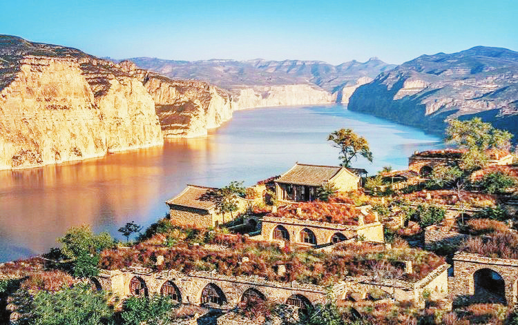 在黃河上形如半島的一個回水灣上,清清的關河水從東邊流來,匯入了黃河。對面是高山和村莊上的排排石頭窯洞,一層一層地排列在緩坡的綠蔭里。河邊有果圃,河中有捕魚船,關河上還有石拱平面橋,過得去卡車,更過得去羊馬驢騾。從山水形勢上看,這里是高崖深壘,有渡口,從大面上看是一個死角,然而又是一個興于明盛于清的重要水旱碼頭,有長城、有烽火臺和古堡。康熙四十年(公元1701年)西北放墾,這里成為北糧進入晉地的轉運點。北上的晉商也由此進入黃河上游,關河口也就成了糧食、茶葉、布匹和皮毛、牲畜交流互換的水上集散地。