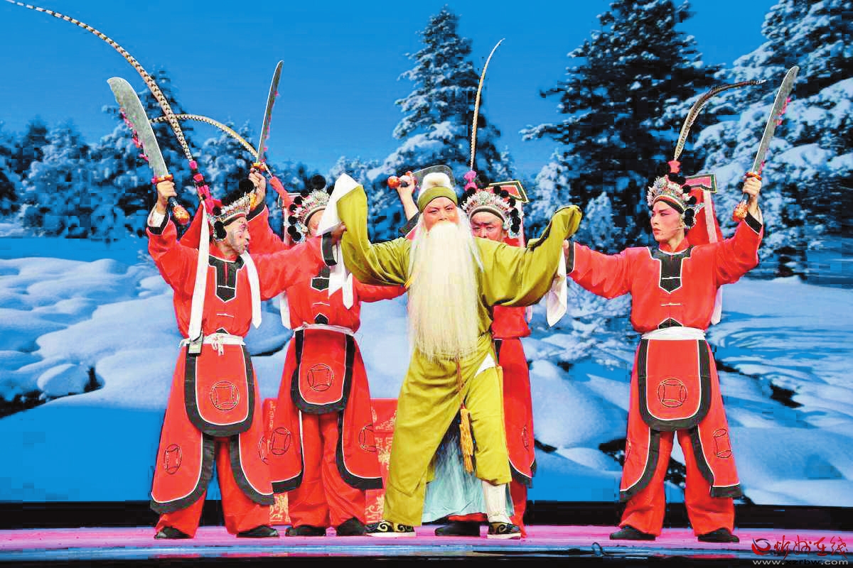 1942年,在原文工團基礎上,于保德縣東關廟梁組建晉綏二分區大眾劇社,社長王玨才,二專署教育科長靳仲敏主管此項工作。不久,從晉綏分局領導下的七月劇社調來高禹、魯博夫、張清人三人,高禹任社長,副社長張煥,指導員王玨才,魯博夫、張清人為骨干,演職人員40多人。他們不僅能表演歌舞類節目,還能表演大型戲曲節目。彼時劇社由廟梁遷至王家灘,由于條件困難,樂器、道具嚴重缺乏,劇社的同志只能自己動手制作,用柳木棍作把杖,用麻作髯口,用紙糊頭盔,用木板作靴底。