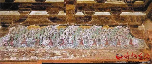 值得一提的是,栱眼壁壁畫與佛壇上的塑像、殿外的經幢,形成了清晰的對應關系,說明整個佛殿在千年之前建造時即有統一的規劃和設計。