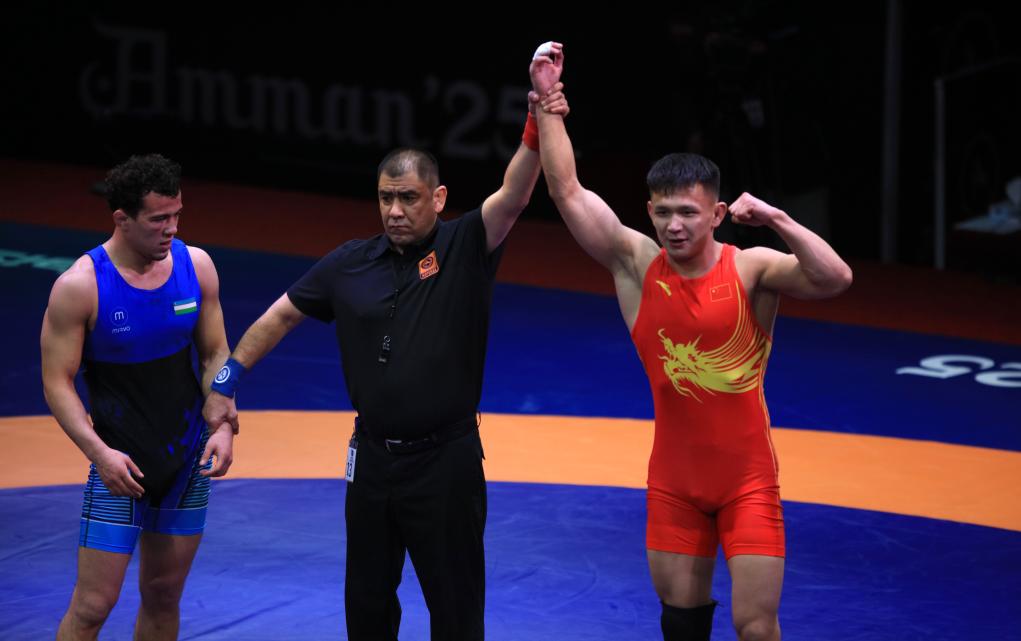 中國隊選手鄒萬豪在當日舉行的男子自由式摔跤61公斤級銅牌賽中,以4:2戰勝吉爾吉斯斯坦選手梅爾扎納扎爾·吾魯。來自新疆的阿黑由·吐爾遜在74公斤級銅牌賽中,以4:0戰勝烏茲別克斯坦選手納斯爾提季諾夫,為中國隊再添一枚銅牌。