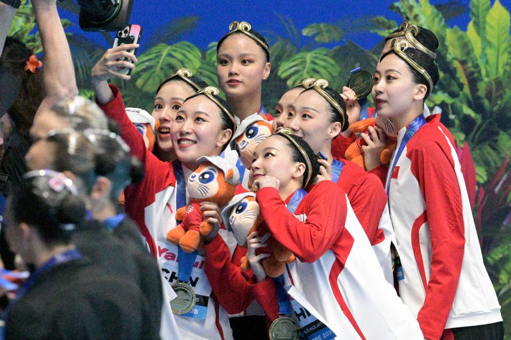 7月22日,中國(guó)隊(duì)在頒獎(jiǎng)儀式后慶祝。新華社發(fā)(鄧智煒攝)