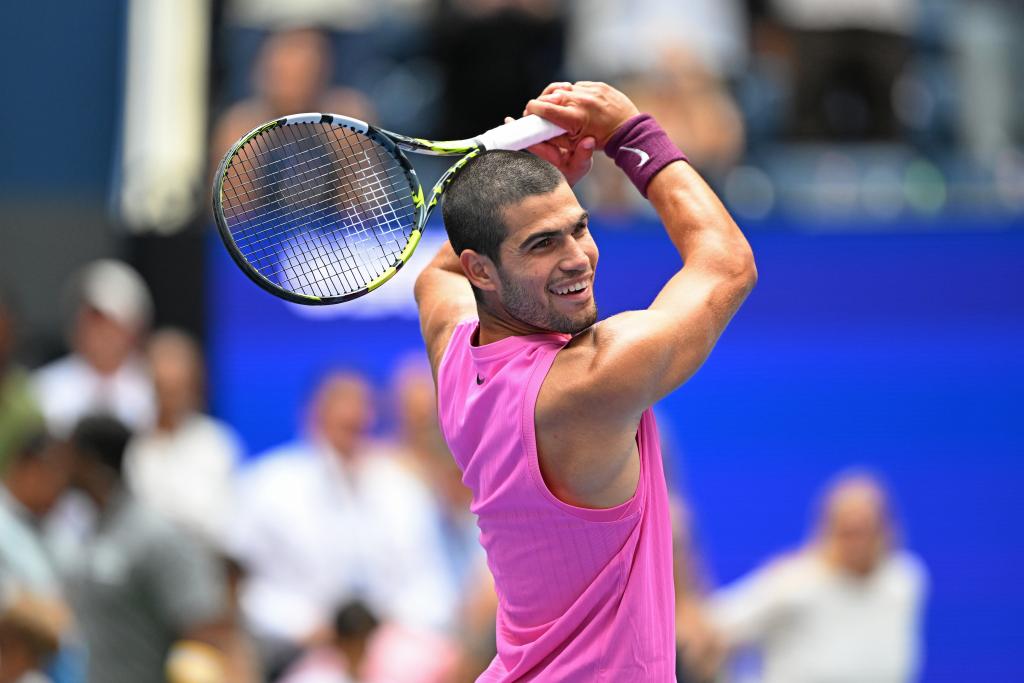 9月2日,阿爾卡拉斯在獲勝后揮拍慶祝。新華社記者 李睿 攝