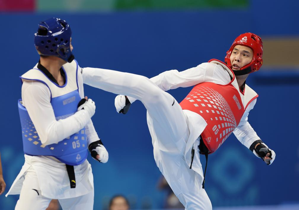 男子80公斤以上級決賽中,廣東隊選手王要錫在主場迎戰山東隊選手劉朝陽。首局,王要錫憑借中段和高位連續得分,以12:4輕松取勝。第二局,王要錫率先完成側踢得分,劉朝陽在追分過程中出現犯規,最終王要錫再下一局,以總比分2:0獲勝,為廣東隊再添一金。