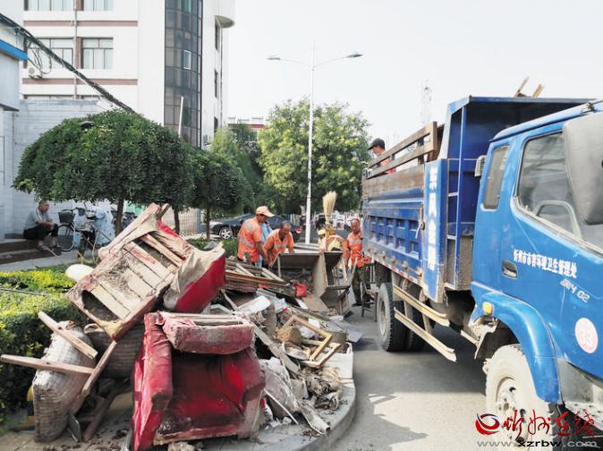 8月2日,忻州城區環衛工人正在清運垃圾。今年是第六屆創建全國文明城市評選決勝之年。在市創建全國文明城市總指揮部的統一協調指揮下,結合當前正在開展的城區“兩下兩進兩拆雙修一提升”專項整治行動,近日,各單位和居民小區清潔環境,助力創建全國文明城市。市市容環境衛生管理處組織環衛工人和車輛對指定堆放的垃圾進行了集中清運。 張劍雄 攝 (責任編輯:梁艷) |