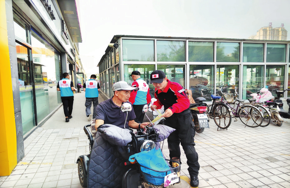 據了解,每年9月的第三個星期六是“世界骨髓捐獻者日”。活動當天,市紅十字會工作人員、市紅十字應急救援隊隊員以及志愿者,向市民普及日常應急救護知識,介紹應急救護基本技能。同時,向市民發放健康教育宣傳資料,宣傳無償獻血、造血干細胞捐獻等相關知識,呼吁更多適齡健康公民奉獻愛心,挽救更多的血液病患者。圖為志愿者在活動現場向市民發放健康教育宣傳資料。(記者張林泉 攝影報道)