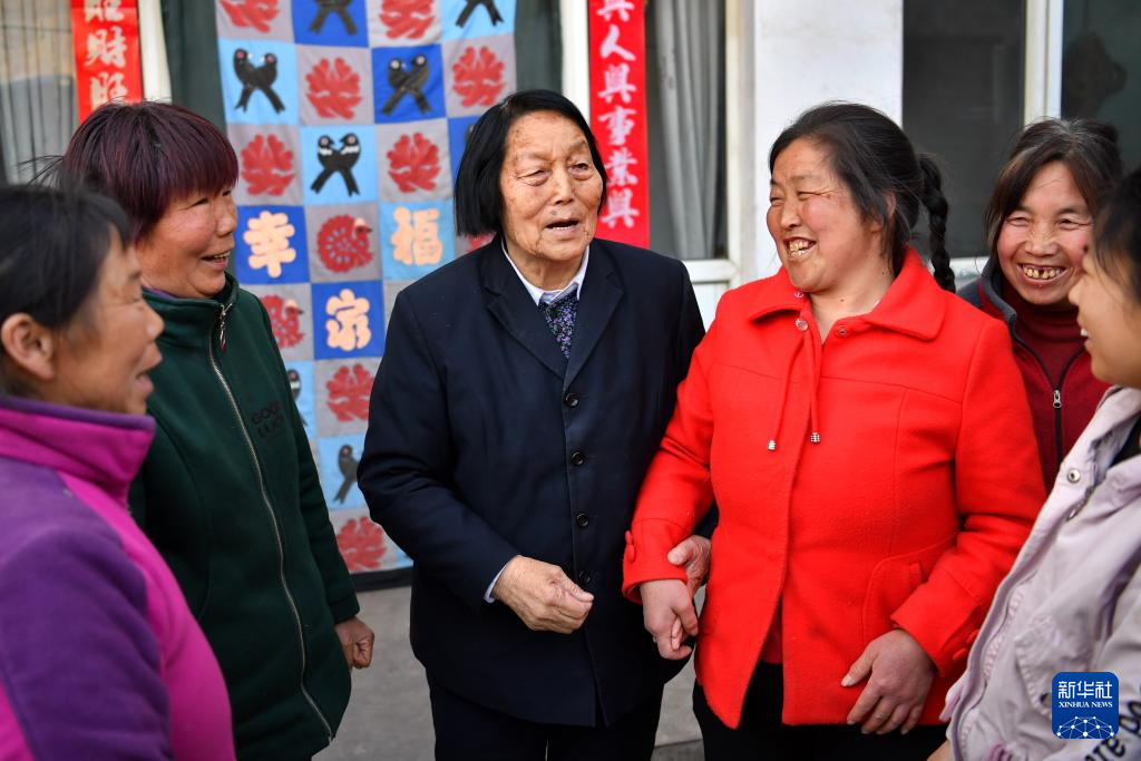 2019年3月23日,申紀蘭(左三)在山西省平順縣西溝村與村民分享全國兩會精神。新華社記者 曹陽 攝