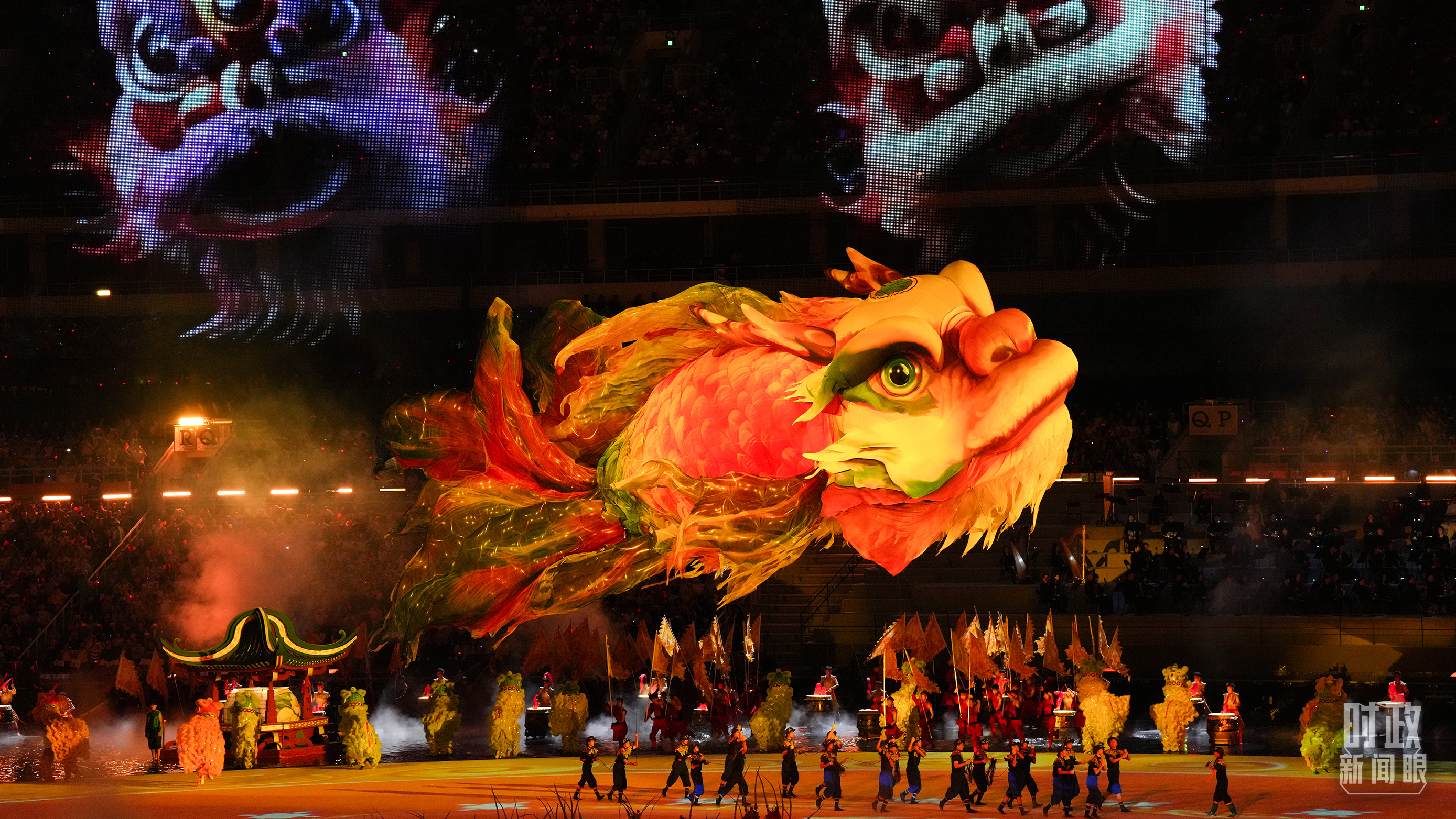 廣東奧體中心內,一幅運用人工智能技術、展現嶺南瑰麗風光的“長卷”徐徐鋪展。開幕式包括入場儀式、奏唱國歌、參賽運動員等代表宣誓、文體展演、主火炬點燃儀式等多個環節。其中,展現粵港澳三地攜手合辦的“同心”“融合”等元素,成為這場開幕式的一大特點。