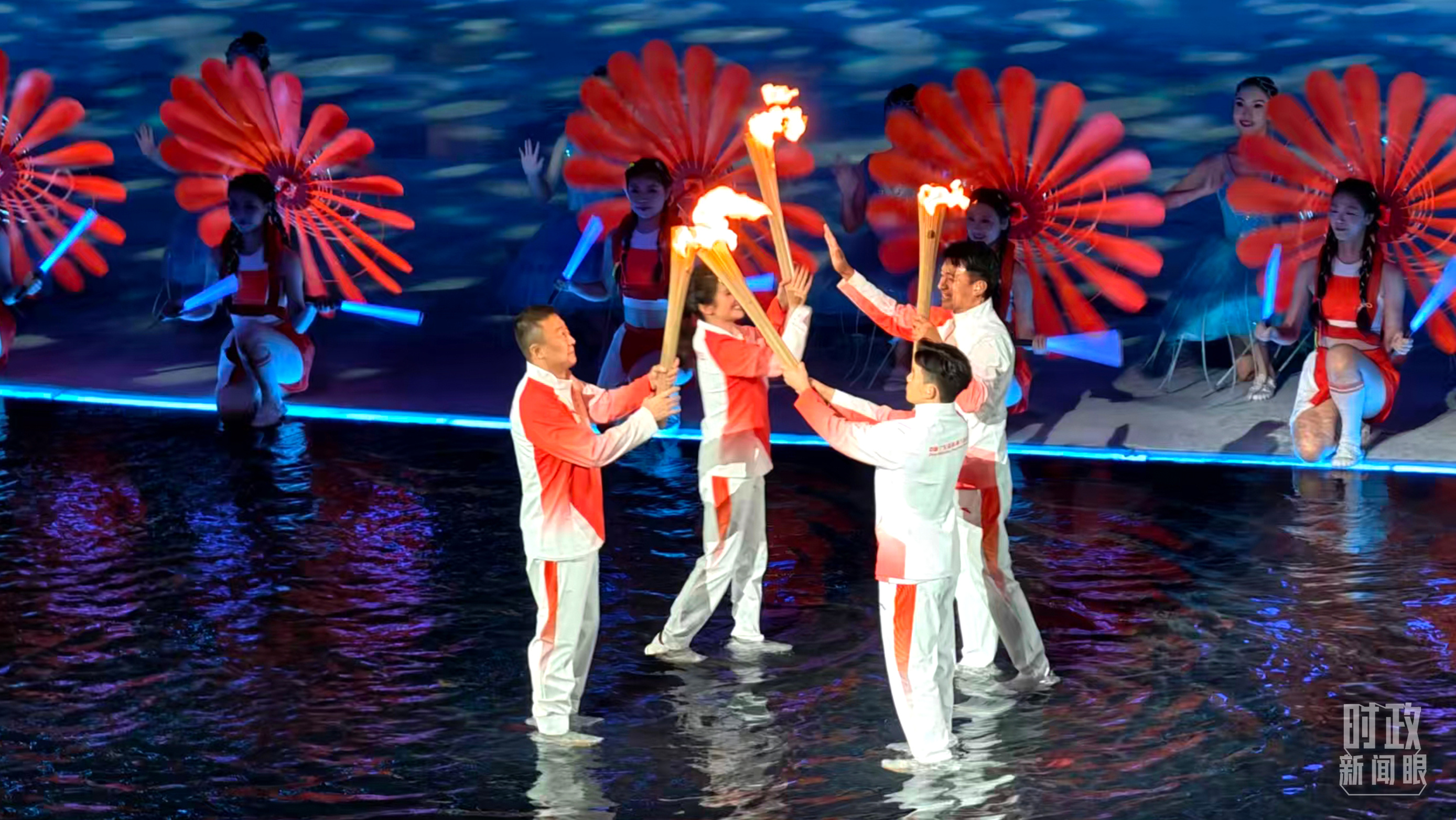 △第十五屆全運會主火炬點燃環節。(總臺央視記者范一鳴、蔣碩拍攝)