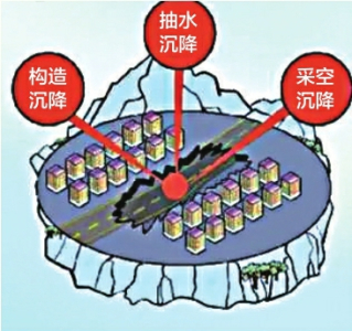 地面沉降是自然因素和人為因素綜合作用下形成的地面標高損失。自然因素包括構造下沉、地震、火山活動、氣候變化、地應力變化及土體自然固結等。人為因素主要包括開發利用地下流體資源(地下水、石油、天然氣等)、開采固體礦產、巖溶塌陷、軟土地區與工程建設有關的固結沉降等。