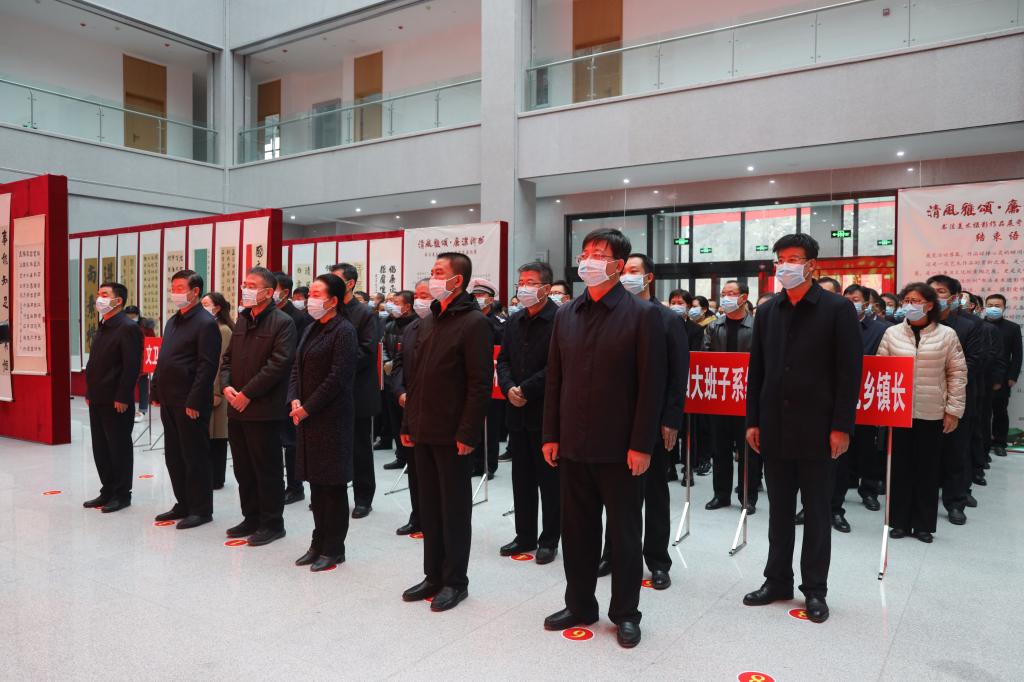 11月17日上午,忻州市紀委監委主辦的“清風雅頌·廉潔忻州”書法美術攝影作品展岢嵐縣專場在岢嵐縣總工會新樓一樓大廳舉行開展儀式。縣四大班子領導和其他縣處級領導、各鄉鎮、縣直各單位主要負責同志共計150余人參加了開展儀式。