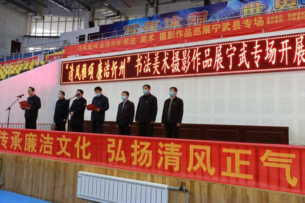 筆墨書廉潔,丹青揚正氣。11月27日,由忻州市紀委監委主辦、寧武縣紀委監委承辦的“清風雅頌·廉潔忻州”書法美術攝影作品巡展寧武縣專場在縣體育館隆重開展。寧武縣委書記任寧虎在開展儀式上講話并宣布開展。縣委常委、縣紀委書記、監委主任尹志剛主持開展儀式。縣四套班子領導和其他縣處級領導,各縣直單位、各鄉(鎮)的主要領導,全縣紀檢監察干部,共計180余人參加儀式。