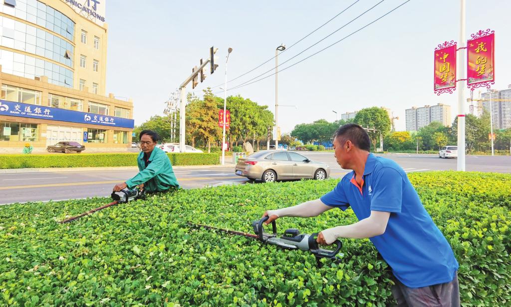 近日,我市園林部門組織人員對城區(qū)綠化帶進(jìn)行了修剪。園林工人的辛勤工作為市民營造了舒適的環(huán)境。 (王國棟 攝)