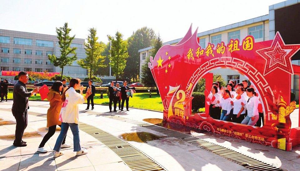 在中華人民共和國成立72周年到來之際,潞安化工集團司馬煤業有限公司舉辦了“奮斗百年路·啟航新征程”職工自拍活動并設置“節日合影墻”,營造出濃厚的節日氛圍。(秦鴻彬攝)