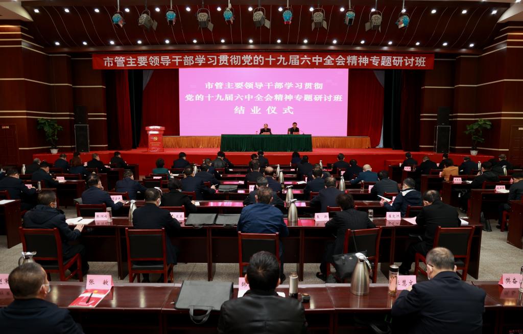 3月25日上午,為期四天的市管主要領導干部學習貫徹黨的十九屆六中全會精神專題研討班圓滿結業。市委副書記、政法委書記、市委黨校(忻州行政學院)校(院)長郭奔勝出席結業儀式并講話。市委常委、組織部部長張敏主持。