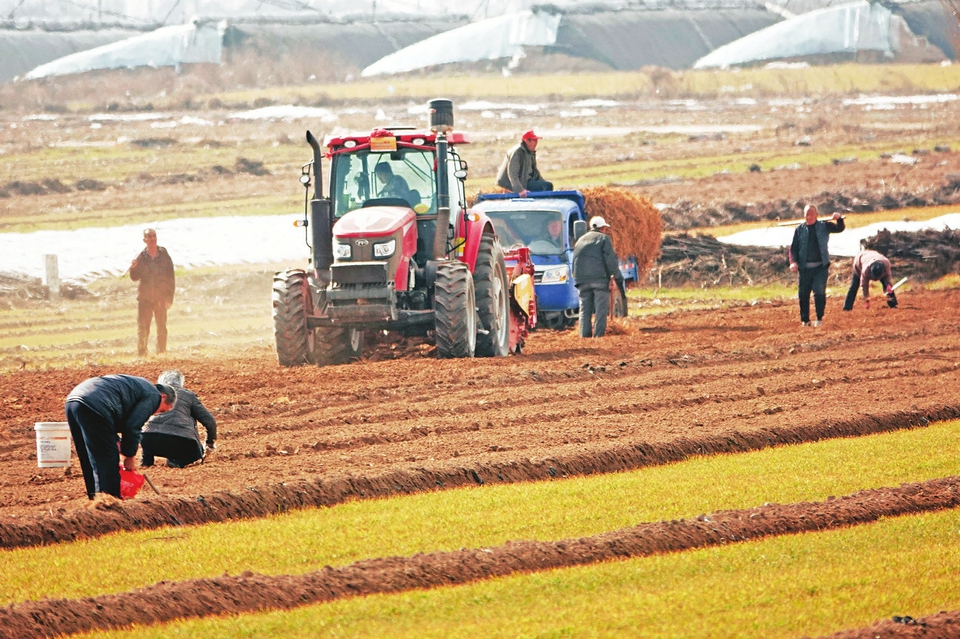 2月18日,新絳縣三泉鎮東林陀村,一家中藥材種植專業合作社的社員們在承包的田間搶收中藥材柴胡,全力備耕春耕。