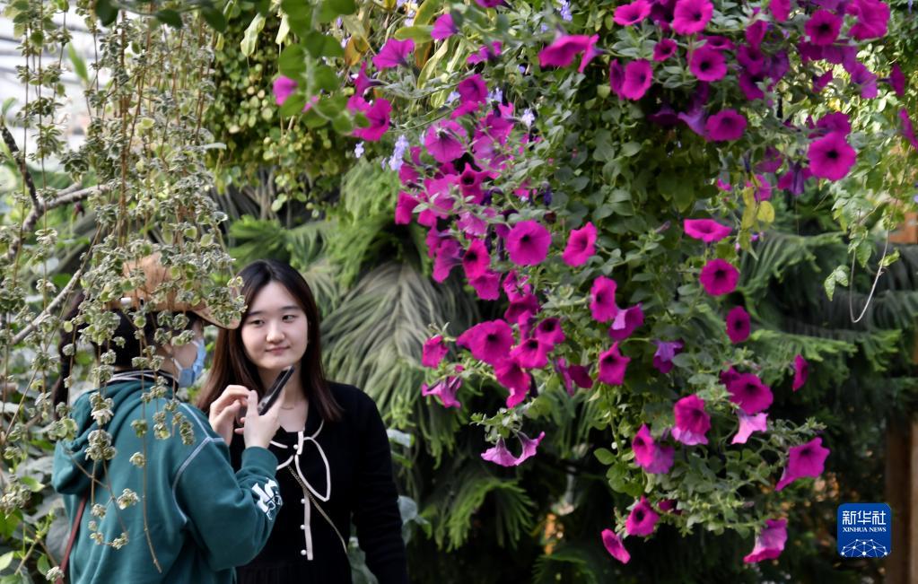 4月4日,市民在豐臺區世界花卉大觀園內休閑賞花。(新華社記者 李欣 攝)