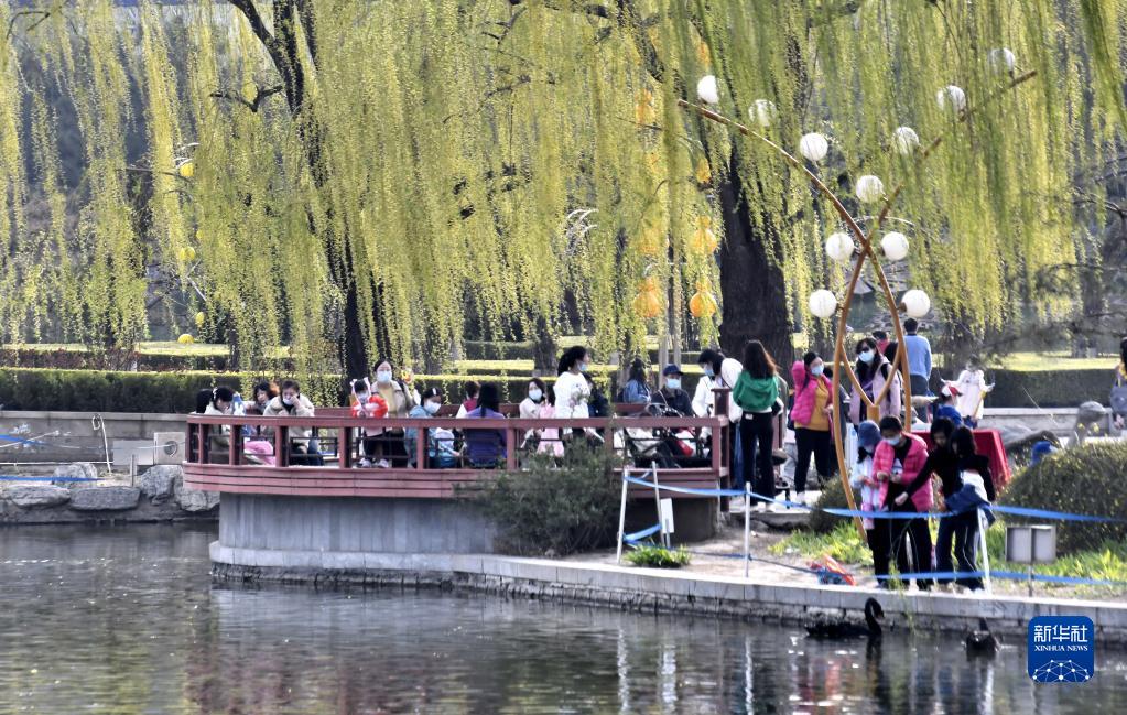 4月4日,市民在豐臺區世界花卉大觀園內休閑踏青。(新華社記者 李欣 攝)