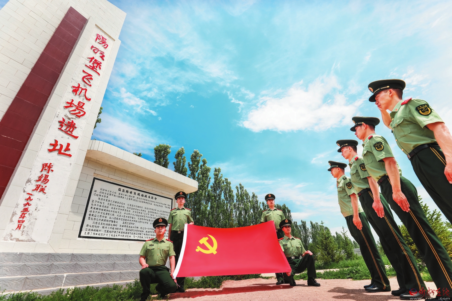 理想如磐,信念如鋼。“七一”前夕,武警山西總隊忻州支隊組織黨員在“陽明堡飛機場遺址”重溫入黨誓詞。 楊旭東攝