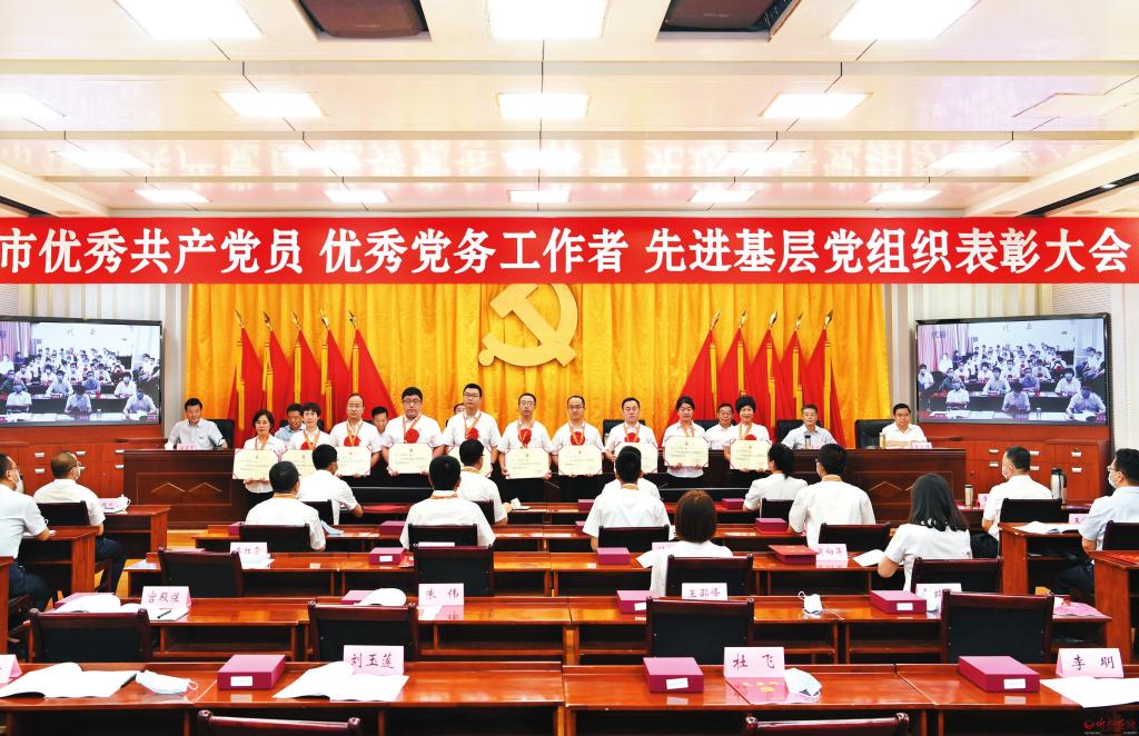 不忘初心,牢記使命,爭先創(chuàng)優(yōu)。在全市“兩優(yōu)一先”表彰大會上,受表彰的全市優(yōu)秀共產(chǎn)黨員上臺領(lǐng)獎。 劉紀森攝