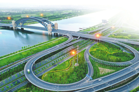 晉陽橋,形如彩帶、態似彩虹,完美地詮釋了傳統與現代交融的設計理念,展現出莊重的對稱式美。夕陽西下,站在晉陽橋段東岸“汾河晚渡”觀景平臺遠眺西山,天際線、山脊線、水岸線層次分明,河面波光粼粼,畫舫古樸典雅,晉陽橋雄偉絢麗,呈現出一幅河、舫、橋、山渾然一體的秀美畫卷。