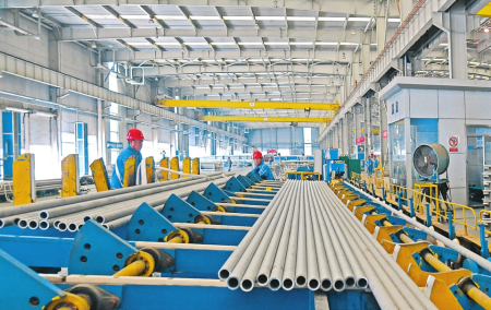 巨大的生產車間內,機器轟鳴,一根根坯料經過穿孔、酸洗、拋光、冷軋等近40道工序,變成锃亮堅固的不銹鋼管,發往國內外企業,成為電站、鐵路、新能源、油氣開采等行業的重要材料。在山西太鋼不銹鋼鋼管有限公司,一系列特色管材產品實現了在重大裝備上的突破性應用,提高了太鋼鋼管產品的美譽度和競爭力。