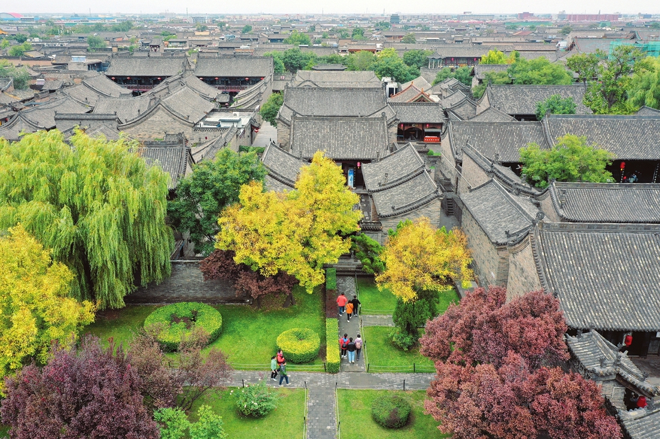 10月4日,游人在世界文化遺產平遙古城游覽。當日是我國傳統節日重陽節,又逢國慶長假,人們來到平遙古城,登高遠眺,秋游觀景,歡度佳節。