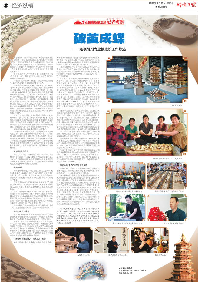 “傳統、特色、專業、優勢”,定襄縣以強化政策支持和要素支撐建設特色專業鎮,重在挖掘傳統特色產業優勢,培育提升釋放集群效應。雕刻專業鎮建設,打開定襄走向全國、走向世界的又一扇大門。(記者郭劍峰 趙 菁)