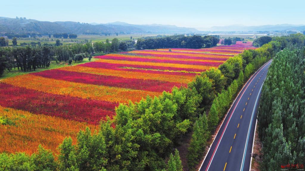 金秋時節,靜樂藜麥陸續進入成熟期。不同品種的藜麥成熟后,麥穗呈現出火紅、金黃、紫紅等多種色彩,藜麥田宛如一幅色彩斑斕的油畫。在陽光的照射下,隨風搖擺的藜麥穗和村民們忙碌的身影組成了秋日的豐收美景圖。