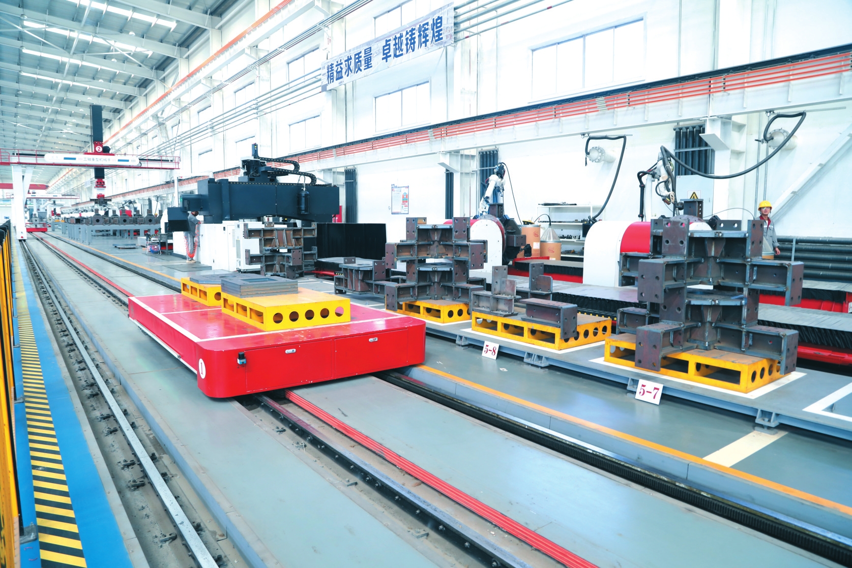 比如全流程智能化作業的鋼結構構件成品焊接生產線,通過三軸機械手、雙軸旋轉變位機、焊接機器人等智能設備實現精準組裝、焊接。經激光檢測確保構件精度后,由打磨機械手完成自動化焊縫處理,再通過端面精銑和拋丸工藝提升成品質量,最后在全封閉的智能噴涂工作站完成涂裝烘干。構件精度,居然精確到“絲”。