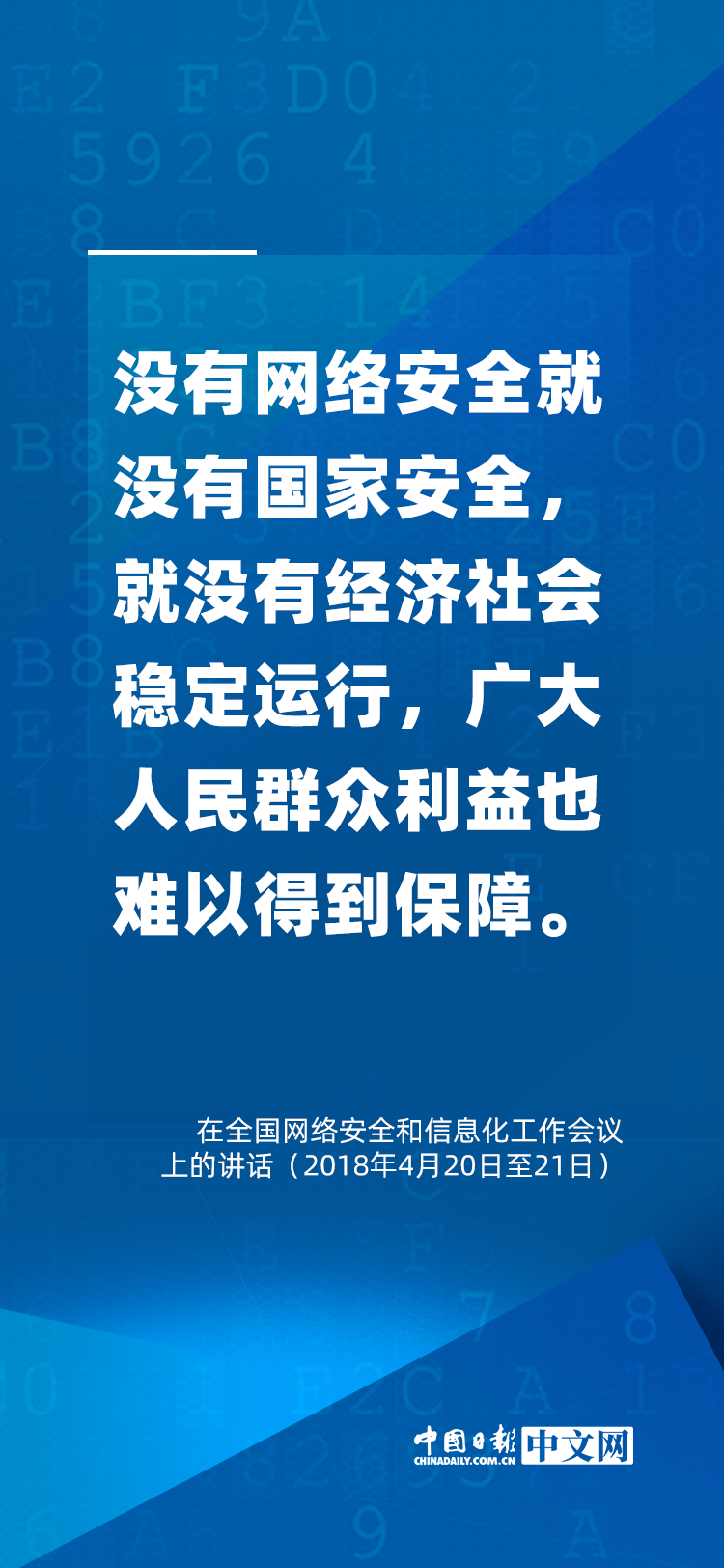 沒(méi)有網(wǎng)絡(luò)安全就沒(méi)有國(guó)家安全。習(xí)近平總書(shū)記始終高度重視網(wǎng)絡(luò)安全工作,作出了一系列重大論述,為推動(dòng)網(wǎng)絡(luò)強(qiáng)國(guó)建設(shè)提供遵循、指明方向。