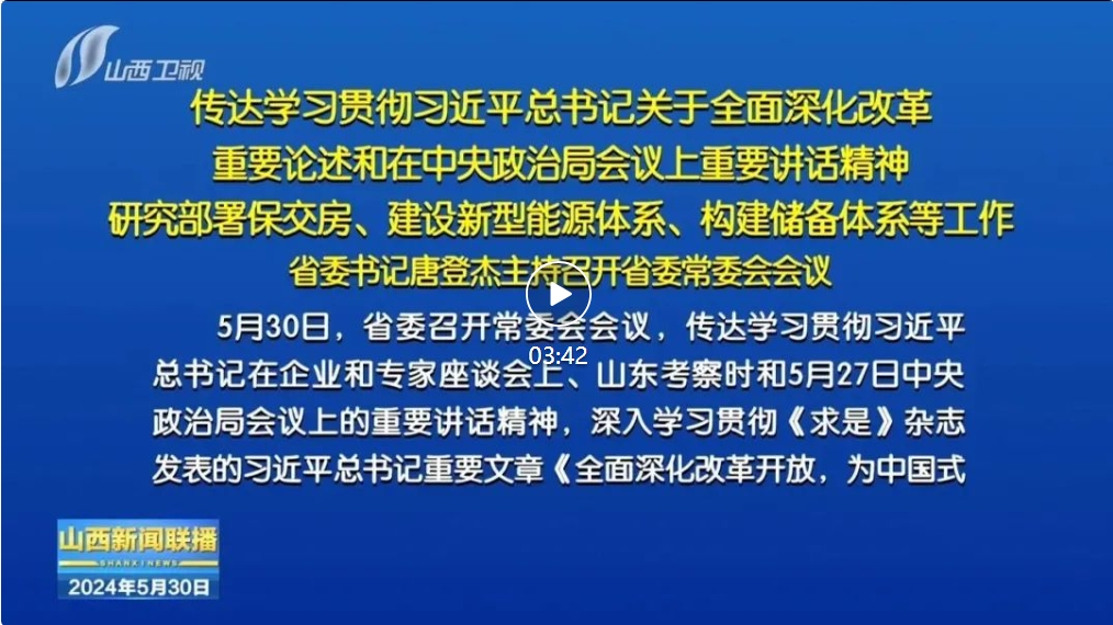 山西日報報道 5月30日,省委召開常委會會議,傳達學習貫徹習近平總書記在企業(yè)和專家座談會上、山東考察時和5月27日中央政治局會議上的重要講話精神,深入學習貫徹《求是》雜志發(fā)表的習近平總書記重要文章《全面深化改革開放,為中國式現(xiàn)代化持續(xù)注入強勁動力》,傳達貫徹全國切實做好保交房工作視頻會議精神,審議通過《山西省加快規(guī)劃建設新型能源體系的實施意見》《關于構建山西省儲備體系的行動方案》。省委書記唐登杰主持會議。