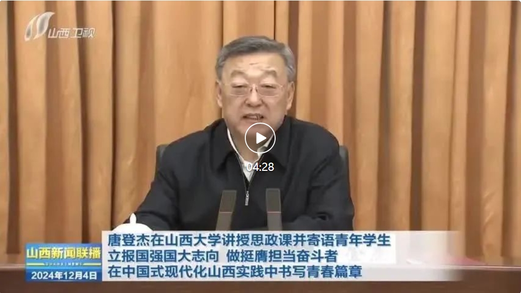 山西日報記者陳俊琦報道 12月3日,省委書記唐登杰來到山西大學講授思政課,深入學習貫徹習近平新時代中國特色社會主義思想和黨的二十屆三中全會精神,寄語全省廣大青年學生牢記領袖殷殷囑托,立報國強國大志向、做挺膺擔當奮斗者,在中國式現代化山西實踐中書寫青春篇章。省委常委、秘書長李鳳岐參加。