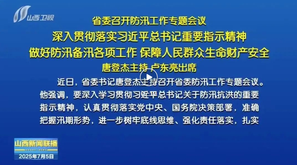近日,省委書記唐登杰主持召開省委防汛工作專題會議。他強調,要深入學習貫徹習近平總書記關于防汛抗洪的重要指示精神,認真貫徹落實黨中央、國務院決策部署,準確把握汛期形勢,進一步樹牢底線思維、強化責任落實,扎實做好防汛備汛各項工作,堅決打好防汛救災主動仗,全力保障人民群眾生命財產安全。省委副書記、省長盧東亮,省領導李金科、楊勤榮、張韶華出席。