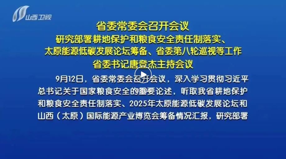 9月12日,省委常委會召開會議,深入學習貫徹習近平總書記關于國家糧食安全的重要論述,聽取我省耕地保護和糧食安全責任制落實、2025年太原能源低碳發(fā)展論壇和山西(太原)國際能源產業(yè)博覽會籌備情況匯報,研究部署十二屆省委第八輪巡視工作。省委書記唐登杰主持會議。