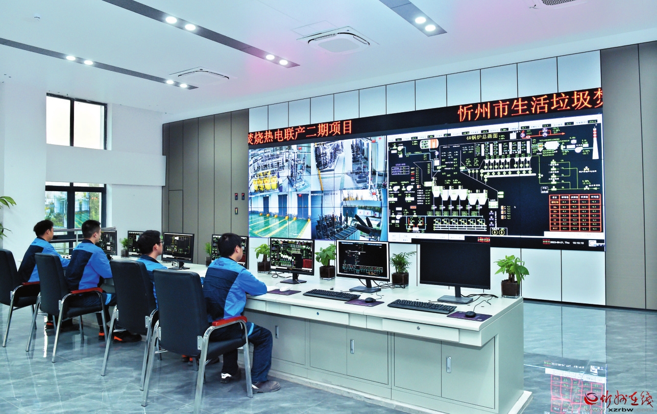 潔晉發電有限公司生活垃圾焚燒熱電聯產項目控制室。本報記者 馮曉磊攝