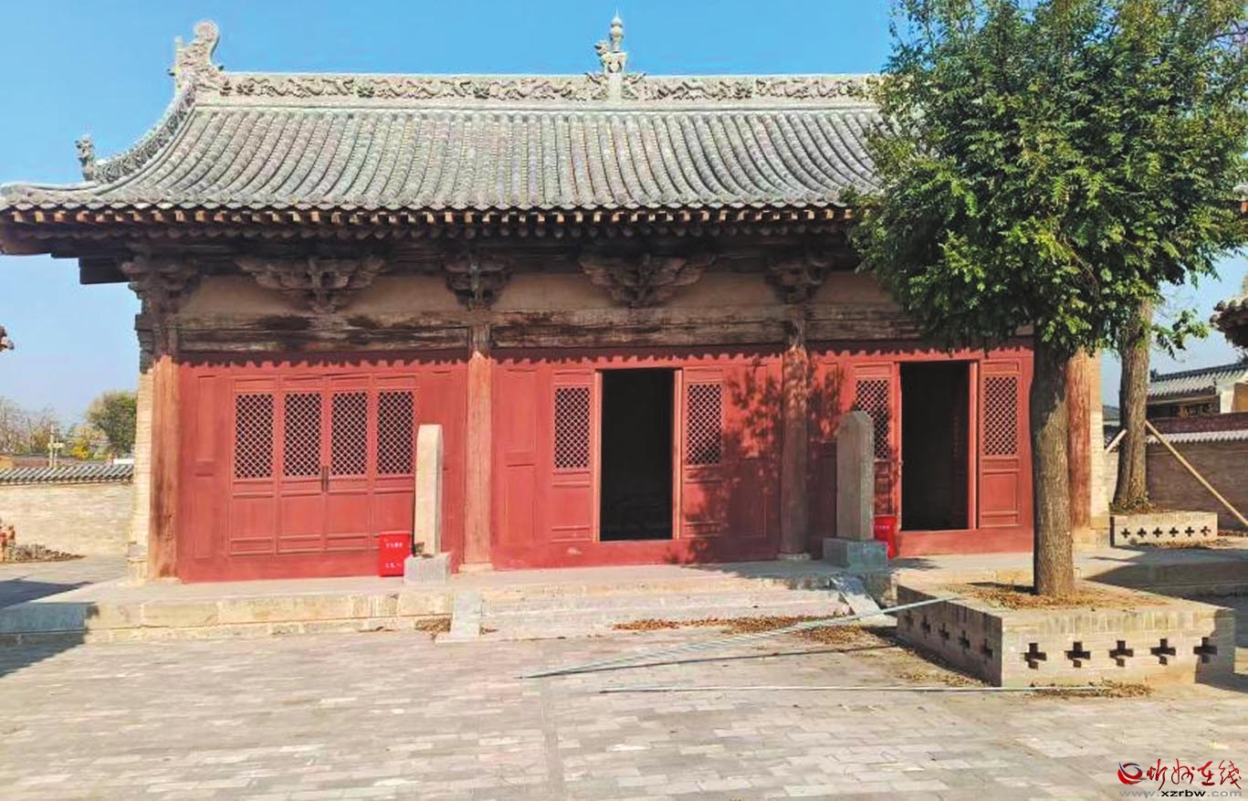 七峰寺位于忻府區董村鎮孫村村北,坐北向南。創建年代不詳,現存一進院布局,中軸線上建筑依次為山門、過殿、大雄寶殿、東西配殿及東西側耳殿。除大雄寶殿為明代遺構外,其余建筑均為清代遺構。大雄寶殿面闊三間,進深四椽,單檐懸山頂,五檁無廊式構架,斗栱五踩雙昂,平身科施45°斜栱。過殿面闊三間,進深四椽,單檐懸山頂。東西配殿形制同過殿。東西側耳殿均為單體建筑,單檐懸山頂。